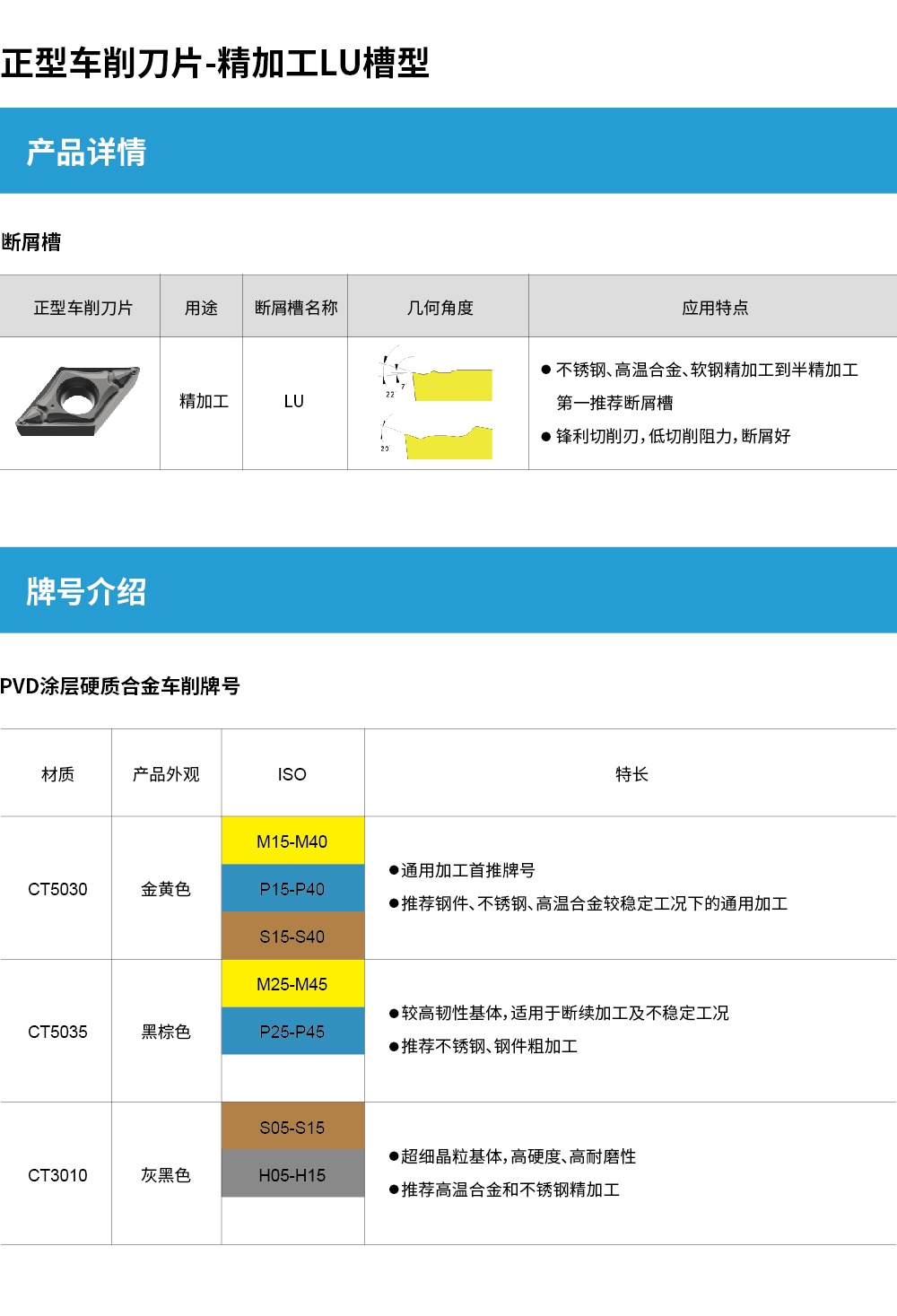 正型車削刀片-精加工LU槽型